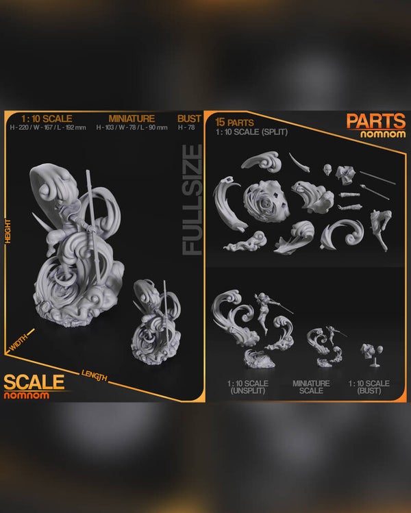 - Assemblage : selon la taille, la figurine peut être imprimée en une seule pièce.